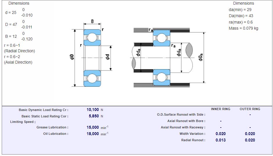 Kuglični ležaj dopušta velike brzine vrtnje, te je primjeren za prenošenje radijalnih i aksijalnih sila do 45°. S obzirom da kuglični ležajevi imaju povoljnu cijenu, u praksi su to najčešće korišteni valjni, odnosno kotrljajući ležajevi. Izrađuju se u jednorednoj ili dvorednoj izvedbi. Jednoredni kuglični ležajevi su kruti, nerastavljivi radijalni ležajevi u kojima su valjna tijela (kuglice) vođena u dubokim utorima u unutarnjem i vanjskom prstenu ležaja. Imaju približno jednaku radijalnu i aksijalnu nosivost, a od svih vrsta ležajeva najprimjereniji su za najviše brzine vrtnje. Jednoredni kuglični ležajevi standardizirani su prema ISO 15, DIN 625 i HRN M C3.600.
