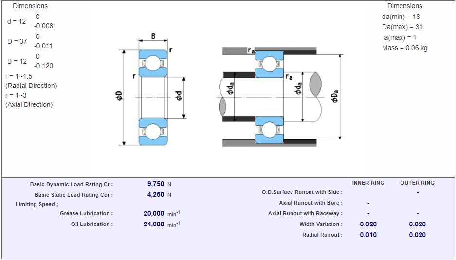 Kuglični ležaj dopušta velike brzine vrtnje, te je primjeren za prenošenje radijalnih i aksijalnih sila do 45°. S obzirom da kuglični ležajevi imaju povoljnu cijenu, u praksi su to najčešće korišteni valjni, odnosno kotrljajući ležajevi. Izrađuju se u jednorednoj ili dvorednoj izvedbi. Jednoredni kuglični ležajevi su kruti, nerastavljivi radijalni ležajevi u kojima su valjna tijela (kuglice) vođena u dubokim utorima u unutarnjem i vanjskom prstenu ležaja. Imaju približno jednaku radijalnu i aksijalnu nosivost, a od svih vrsta ležajeva najprimjereniji su za najviše brzine vrtnje. Jednoredni kuglični ležajevi standardizirani su prema ISO 15, DIN 625 i HRN M C3.600.