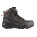 Opis: Visoke zaštitne kožne cipele bez metalnih dijelova u smeđoj boji Materijal gornjišta: glatka koža Podstava: tekstil, prozračna mrežica Pojačanje: sprijeda PU, straga termoplastični PU Đon: PU dvostruke gustoće/guma, antistatik, protuklizni na keramici i metalu, otporan na habanje, otporan na visoke temperature (300°C/1 minuta) Zaštitna kapica: kompozitna Neprobojna tabanica: kompozitna Težina: 762 g (vel 42) Tehničke karakteristike: S3 SRC HRO Metal free Norma: EN ISO 20345