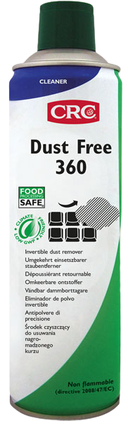 Nezapaljivo sredstvo za uklanjanje prašine pod visokim pritiskom. Učinkovita mješavina tekućih plinova pod visokim tlakom koja uklanja prašinu i čisti snažnim mlazom suhog inertnog plina. Sprječava pogreške, zastoje i oštećenja uzrokovana mikroskopskom prašinom. Ne ostavlja ostatke ili kondenzaciju. Dizajniran za upotrebu kao sredstvo za čišćenje električne ili elektroničke opreme u područjima za preradu hrane. Registriran NSF K2.