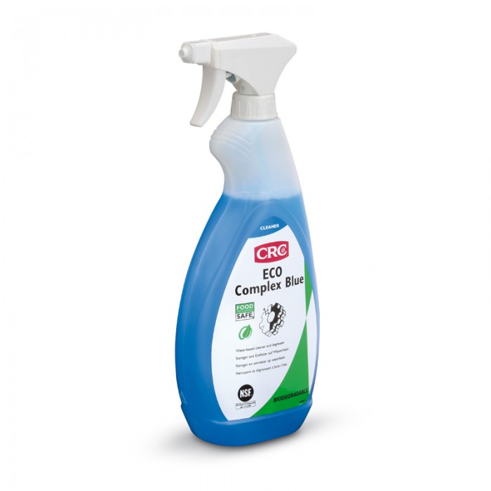 CRC ECO COMPLEX BLUE koncentrirani je odmaščivač na vodenoj bazi za upotrebu u prehrambenoj industriji; Registriran NSF A1. Izvrstan proizvod za upotrebu u dip tankovima, visokotlačnim peračima, ultrazvučnoj opremi i opremi za čišćenje parom. Razrijediti prema informacijama u tehničkom listu. Siguran na plastici. Nakon nanošenja isprati vodom. Lako biorazgradivi koncentrat prema OECD 301B: 64%.