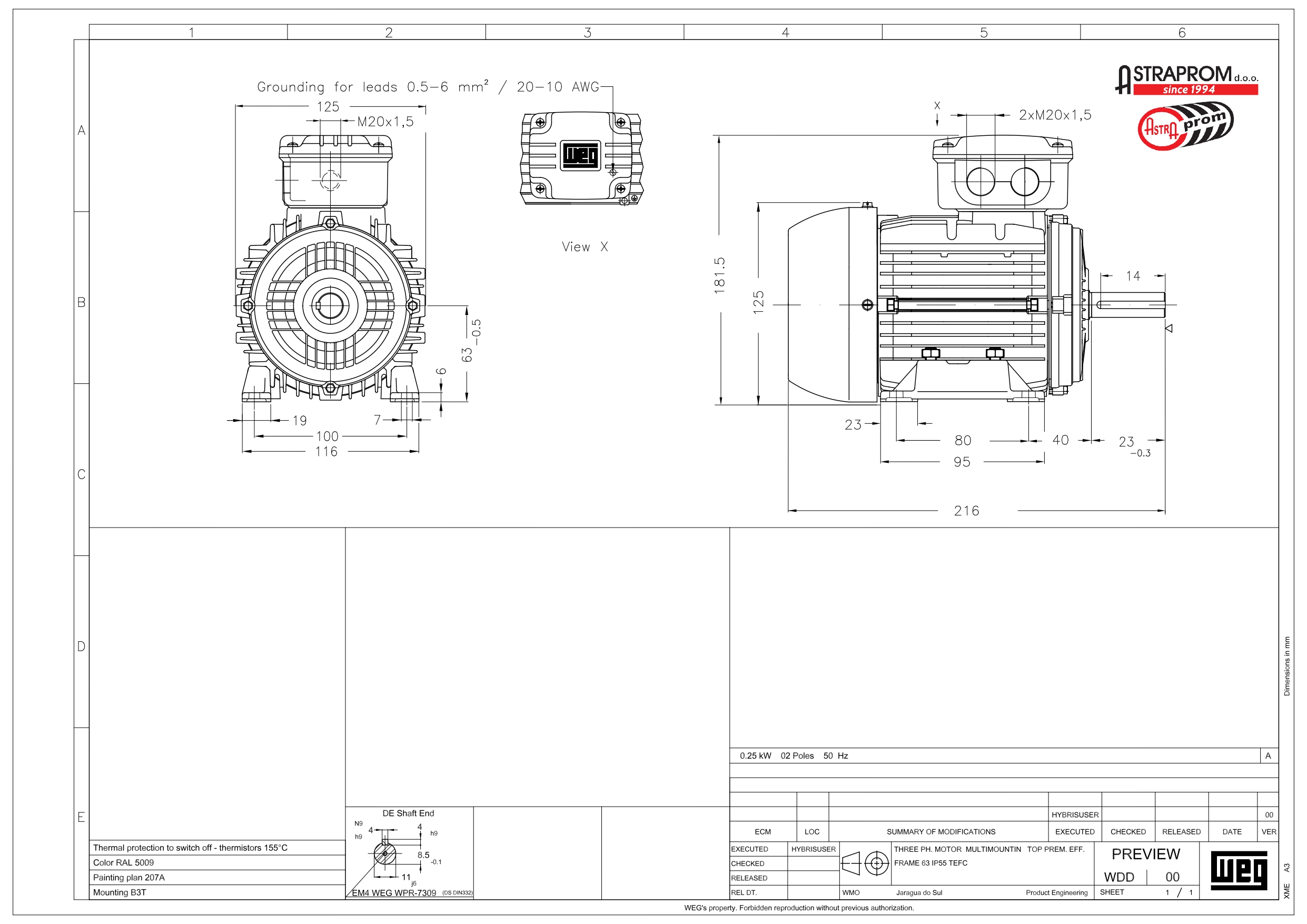 Astraprom d.o.o. ponosni je generalni distributer WEG Industries-a za Hrvatsku! Osnovana 1961. godine, WEG je globalna tvrtka za elektro opremu koja proizvodi električne strojeve i razvija rješenja za automatizaciju u velikom broju industrijskih sektora. WEG ulaže u neprekidni razvoj inovativnih rješenja za industriju, te prati trendove energetske učinkovitosti, obnovljive energije i električne mobilnosti. S centrima proizvodnje u 12 i prisutnosti u više od 135 zemalja, tvrtka danas broji preko 33.000 zaposlenika diljem svijeta.