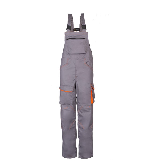 Materijal: 65% poliestersko vlakno, 35% pamuk, 245g/m 2 Održavanje: pranje u perilici rublja 60°C Radne farmer hlače izrađene su od izdržljive tkanine u mješavini poliestera i pamuka. Kopča se skrivenim patent zatvaračem, a tregeri su podesivi. Ima 8 funkcionalnih džepova i dodatno pojačanje na koljenima s džepom za štitinke za koljena. Kroj je klasičan i dobro pristaje svima.