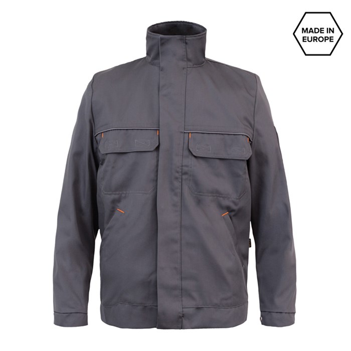 Materijal: 65% poliestersko vlakno, 35% pamuk, 245g/m 2 Održavanje: industrijsko pranje na 75 °C, pranje u perilici rublja 60°C Radna jakna izrađena je od Tencate Tecawork™ tkanine koja je pogodna za industrijsko pranje na 75 °C. Kopča se skrivenim YKK drukerima, ima uvijek potrebne funkcionalne džepove (5), visoki ovratnik. Rukavi se zatežu YKK drukerima. Jakna je, kao i čitava kolekcija ALARA, malo užeg kroja koji bolje pristaje, a ne umanjuje slobodne pokrete tijela. Boja: siva