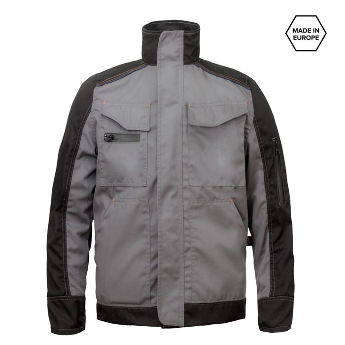 Materijal: 65% poliestersko vlakno, 35% pamuk, 245g/m 2 Održavanje: industrijsko pranje na 75 °C, pranje u perilici rublja 60°C Radna jakna izrađena je od Tencate Tecawork™ tkanine koja je pogodna za industrijsko pranje na 75 °C. Kopča se skrivenim YKK patent zatvaračem s čičak trakom, ima visoki ovratnik i 5 funkcionalnih džepova, a oni najizloženiji zatvaraju se vodonepropusnim YKK patent zatvaračem. Rukavi se zatežu čičak trakom. Kroj je klasičan i dobro pristaje svima. Boja: siva