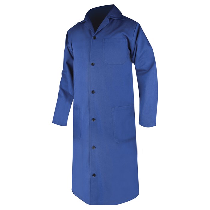 Materijal: 100% pamuk, 245g/m 2 Održavanje: pranje u perilici rublja 60°C Duga radna kuta. Kopča se gumbima sa prednje strane kute. Ima dva donja džepa i gornji džep. Kroj je klasičan i dobro pristaje svima. Boja: plava