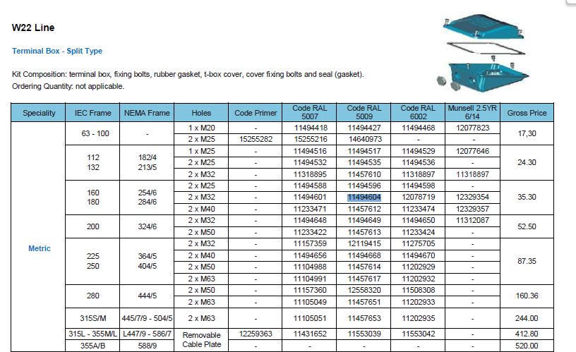 KUTIJA PRIKLJUČNA EL.MOTORA 160/180 W22 M32 predstavlja pouzdano rješenje za sigurno električno povezivanje elektromotora. Namijenjena je motorima s IEC okvirom 160 i 180 iz W22 serije. Osigurava stabilan rad i sigurnost električnih spojeva u svim radnim uvjetima.