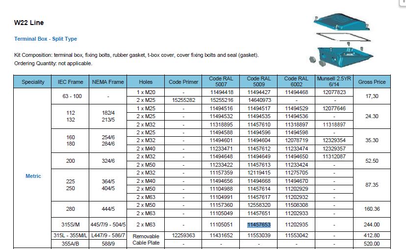 KUTIJA PRIKLJUČNA EL.MOTORA 315 W22 W3 M63 WEG 11457653