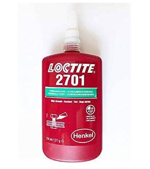 LOCTITE® 2701 je zeleno, nisko-viskozno ljepilo za osiguranje vijaka na bazi metakrilata koje se odlikuje visokom čvrstoćom, osobito na kromiranim površinama. Njegovo vrijeme fiksiranja na čelik iznosi 10 min, na mjed 4 min i nehrđajući čelik 25 min. Podnosi mala onečišćenja industrijskim uljem. Prikladno je za sve metalne spone. Fluorescentno je pod UV svjetlom.
