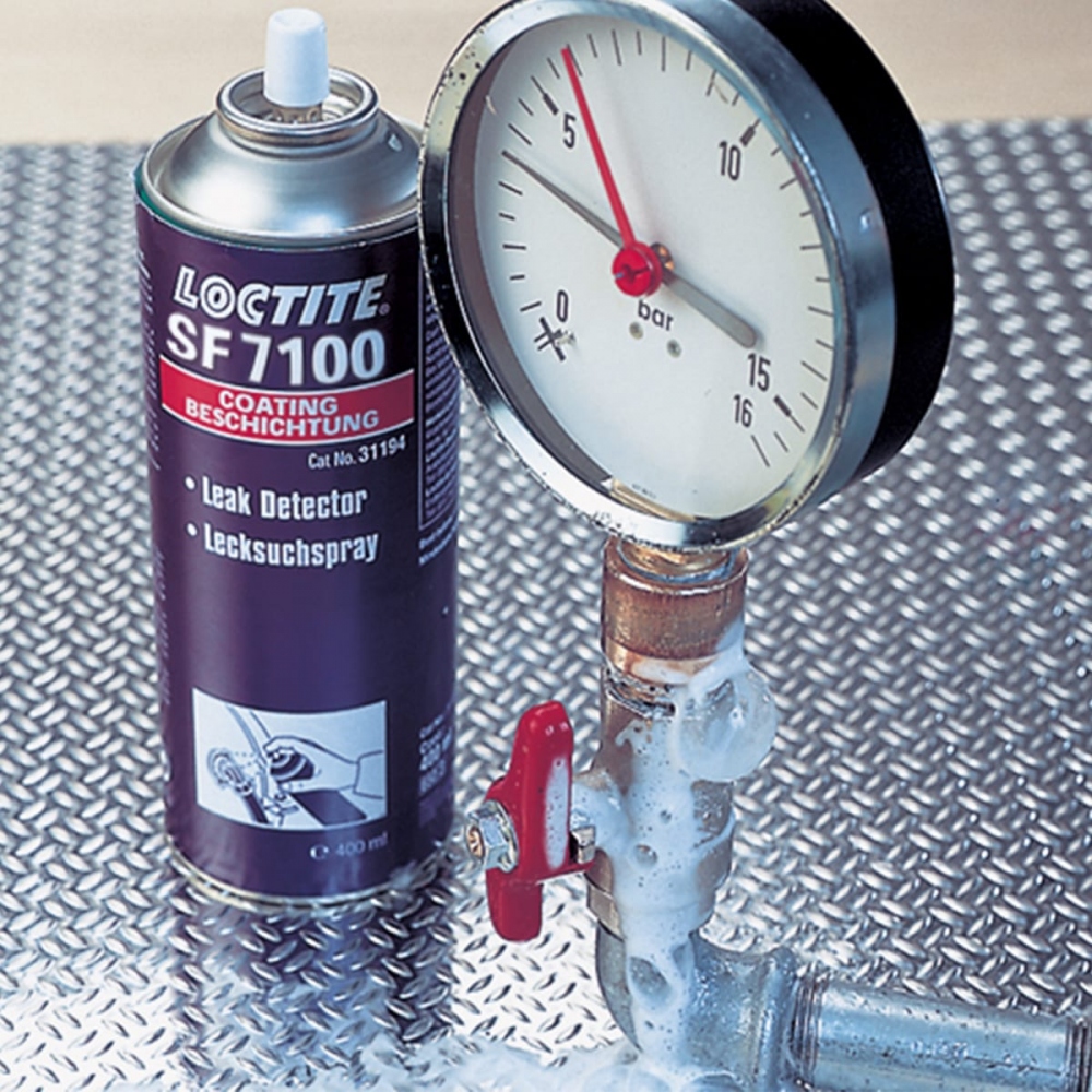LOCTITE® SF 7100 je proizvod za otkrivanje propuštanja za hitne popravke na sustavima s plinom pod pritiskom i komprimiranim zrakom. Taj proizvod stvara mjehuriće na mjestima curenja i nanosi se pomoću spreja. Proizvod je na bazi mješavine surfaktanata, nije zapaljiv i ne sadrži štetne tvari. Prikladan je za uporabu na željeznim, bakrenim i plastičnim cijevima. LOCTITE SF 7100 ima raspon radne temperature od +10 to +50 °C.