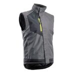 AZUKI vodonepropusni zimski prsluk. 5 džepova (1 džep na prsima od OXFORD tkanine s vodootpornim reflektirajućim patent zatvaračem, 2 vertikalna džepa s preklopom i 2 unutarnja džepa s Velcro čičkom) Visoki flis ovratnik, u ovratniku skrivena pričvršćena kapuljača s elastičnom vrpcom i unutarnjom omčicom za slušalice. Zatvara se patent zatvaračem sa Velcro preklopom Oxford pojačanja na dojnjem dijelu pojasa i prilagodljivi pojas sa elastičnim vrpcama. Vodonepropusni vareni šavovi. Materijal: RIPSTOP (5 mm) 100 % Poliester s PVC premazom 300 g/m2 Podstava: 100% Poliester flis 300 g/m2 Punjenje: 100% Poliester 180 g/m2 Pojačanja i detalji: OXFORD 100% Poliester 300D