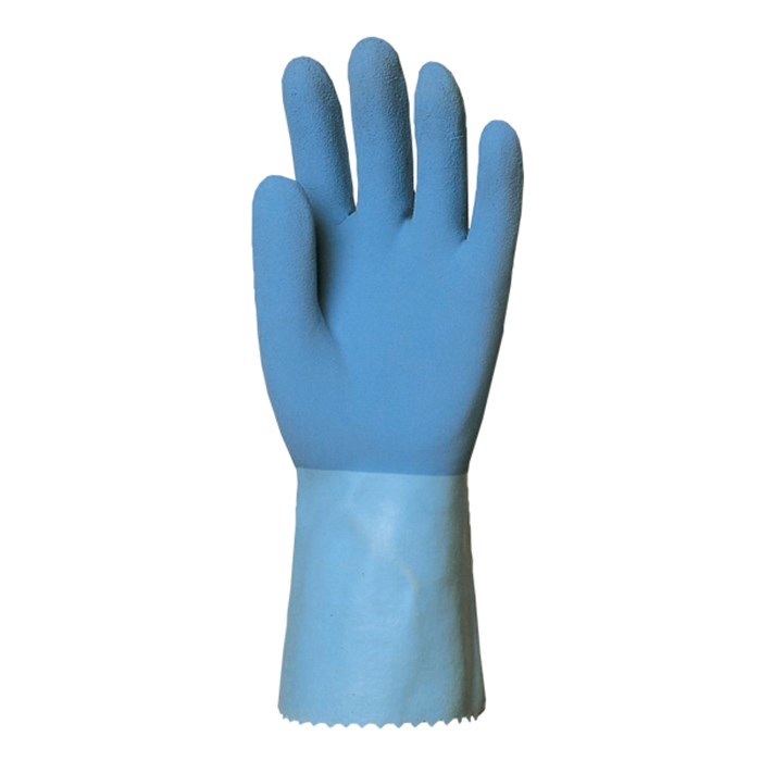 Opis: Latex rukavica visoke kvalitete otporna na blaže kiseline sa protukliznim dlanom Materijal: Latex, pamučna podloga Dužina: 30 cm Debljina: 1.3 mm