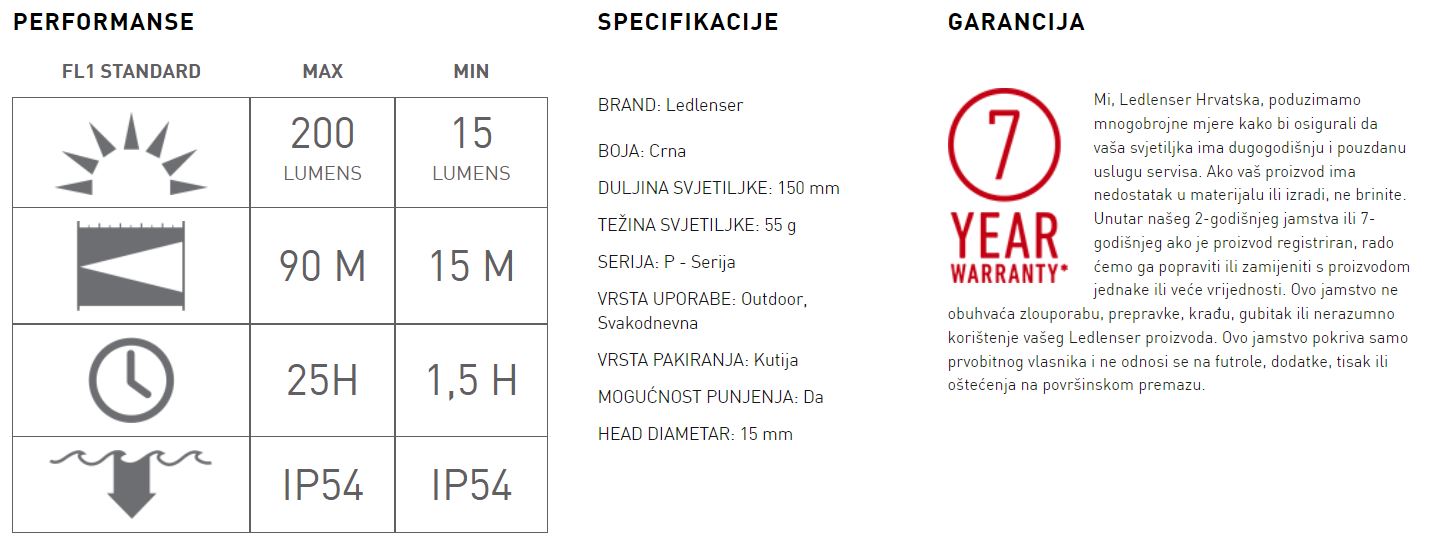 P4R Core ističe se svojom veličinom s vrhunskom izlaznom snagom od 200 lumena te ima uklonjivu punjivu bateriju s mikro USB sučeljem. Svjetiljka je tanka i lagana, ima stražnji prekidač i džepnu kopču. Patentirani Ledlenser sustav naprednog fokusa pruža precizno osvjetljenje kod raspršene i usmjerene svjetlosti.